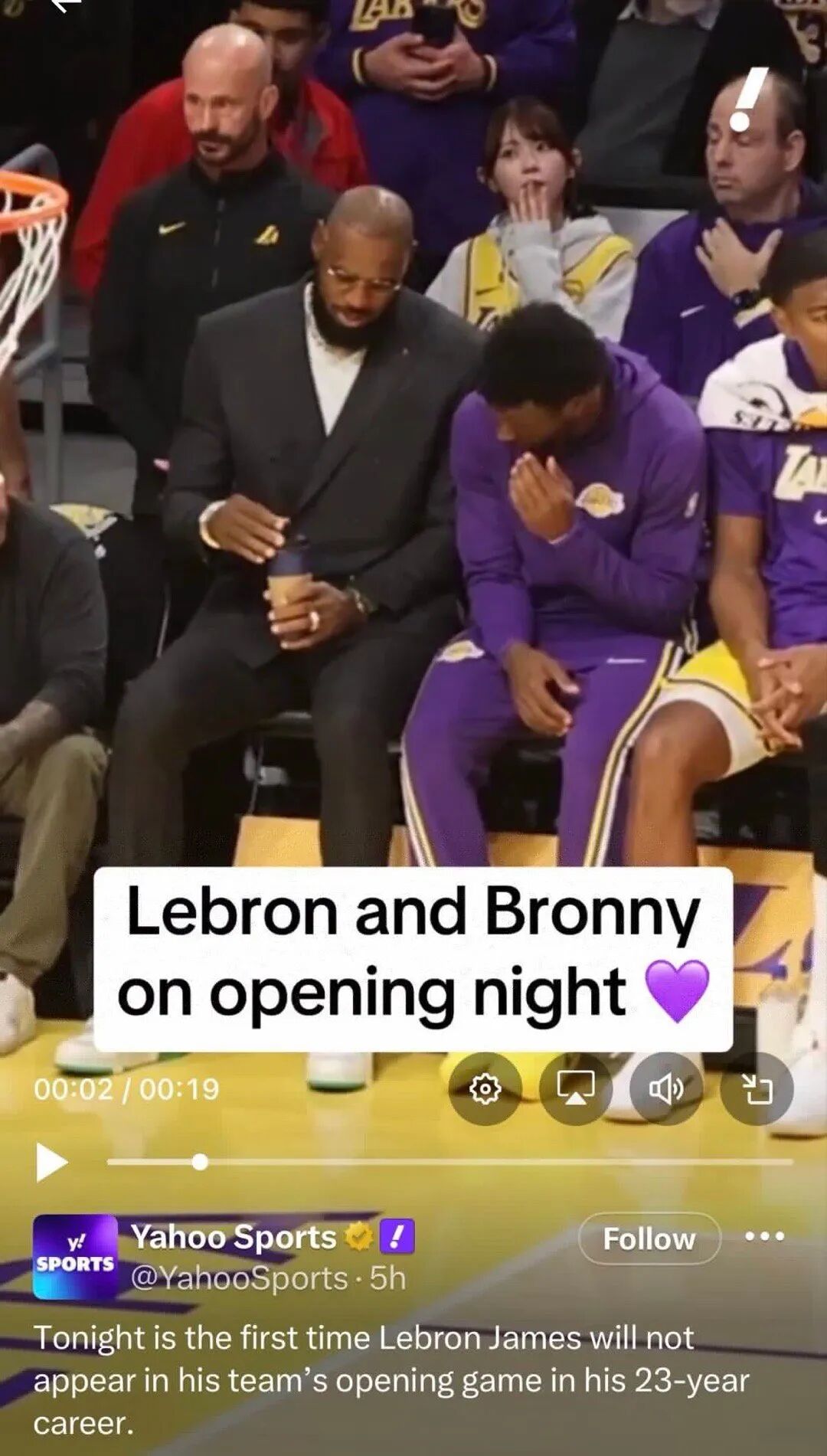 在昨天早上(北京时间 10:00),NBA 勇士 vs 湖人(主场)的赛程中,镜头就拍到了詹姆斯背后坐着一个“小小”的甜妹。