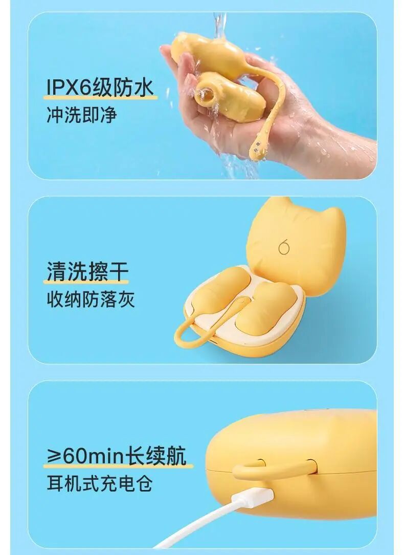 耳机舱收纳充电:不仅方便携带,更能给小猫一个安心洁净的“小窝”,随用随取,电力满满。