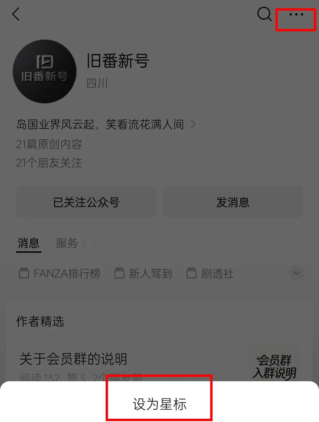 打开公众号首页,点击“···”,将本公众号设为星标