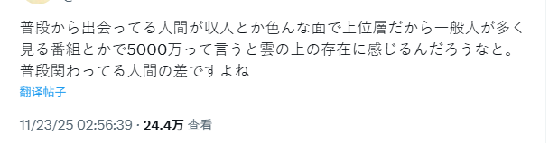 目前她的评论区底下一堆的人在给她科普年收入能到5000万日元的人有多少,并且有点蛐蛐的说这些人很明显也不会找你结婚~