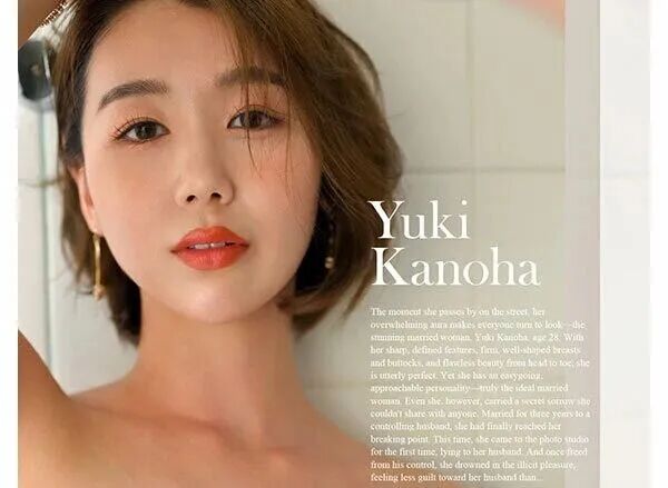 这究竟是什么意思呢?就是说结城花乃羽的美貌让人过目难忘:第一次,为她的精致脸庞驻足;第二次,被她丰满的胸围吸引;第三次,忍不住打量那双匀称的美腿;第四次,目光流连于她纤细的腰身;第五次,彻底沉醉于她周身散发的性感气息⋯⋯说真的,要是真在路上遇到她,回头五次肯定会被当成痴汉,但谁让结城花乃羽的魅力如此难以抗拒呢~ 值得一提的是,她还是一位婚龄三年的真实人妻。不过由于外形太过出众,这个人设反而显得不那么重要了。关键还是在于:看完封面和剧照后,你是否对这位新人产生了“性”趣?