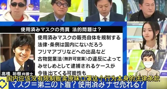 因为日本目前,并没有明确限制贩卖原味口罩的条例,即便有违规也是违反了二手网络交易里的“古物营业法”,即没有经营许可。