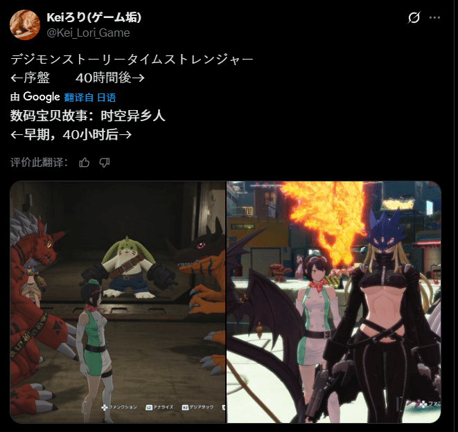 Kei_Lori_Game的推文获得了大家的一致认可,顺带还嘲讽了一下隔壁的《宝可梦》,称其为“高预算做出来的《宝可梦传说Z-A》效果却不及只有零头的《数码宝贝物语:时空异客》”。