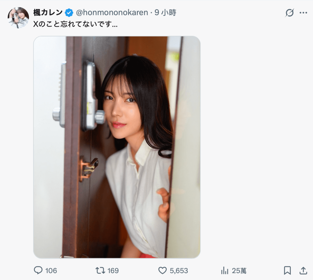 枫花恋这句俏皮话刚冒出来,老粉们悬着的心算稍稍落地 ,毕竟这位 “千年一遇的正统美少女” 都快成业界 “失踪人口” 了。虽说她 7 月就在 IG 直播里露过声儿(依旧挡着脸),甚至有粉丝 10 月在韩国偶遇她出席活动时笑容灿烂,但 X 账号停更太久,难免让人瞎琢磨。要知道她之前可是会用広末凉子的梗自嘲 “自称枫卡伦の枫卡伦です” 的活跃分子,这波沉默确实反常。