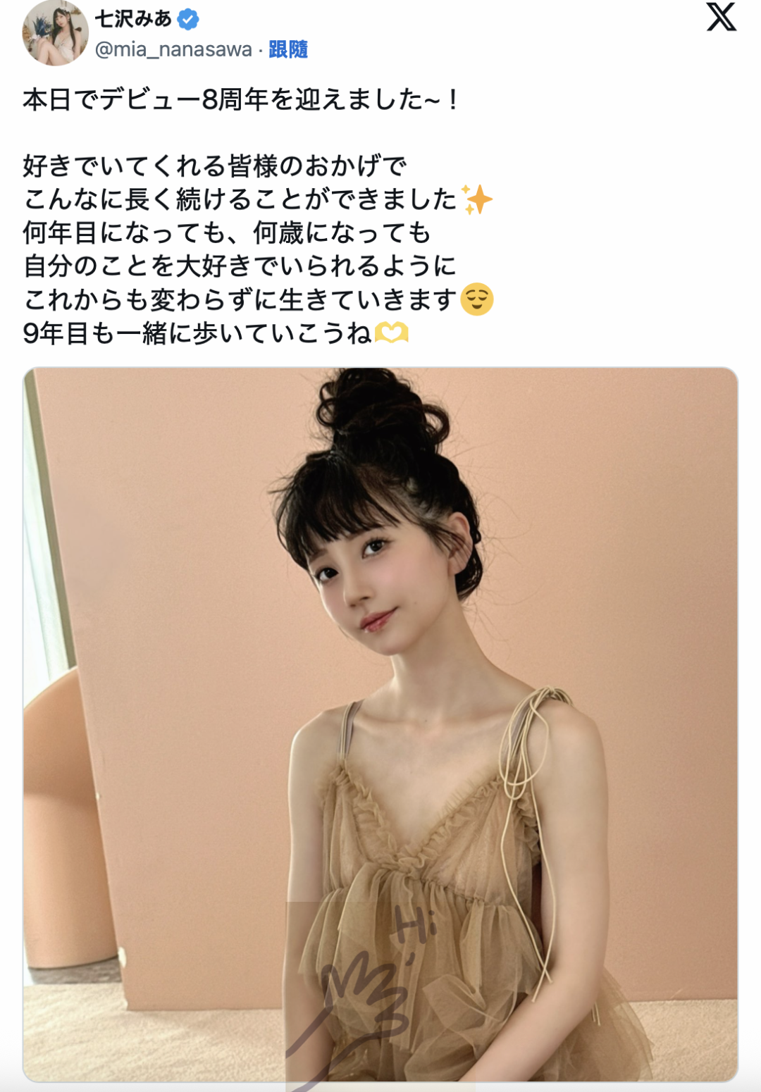 【暗黑八卦】出道八周年!七沢みあ(七泽米亚)的感想是?(转载)