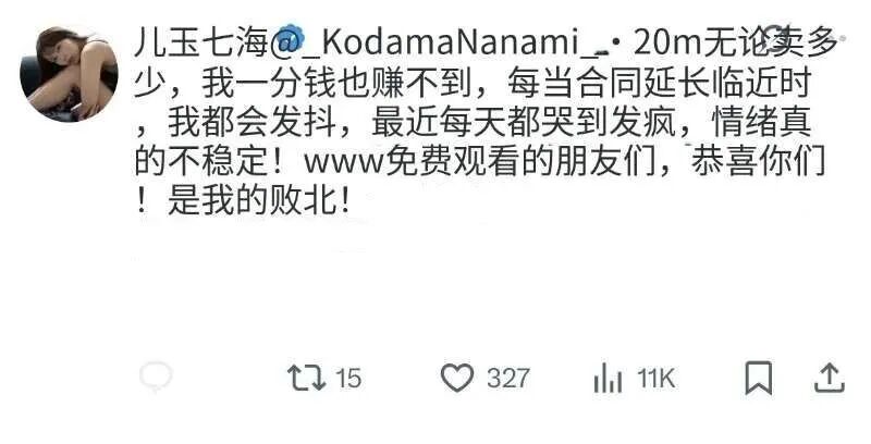 更惨的是,合约一到期,片商就开始算KPI:销量拉胯?续签砍单本价;热度下滑?直接给你短约警告。七海这波就是被HR喊去会议室:“亲,市场不景气,降薪50%考虑下?”