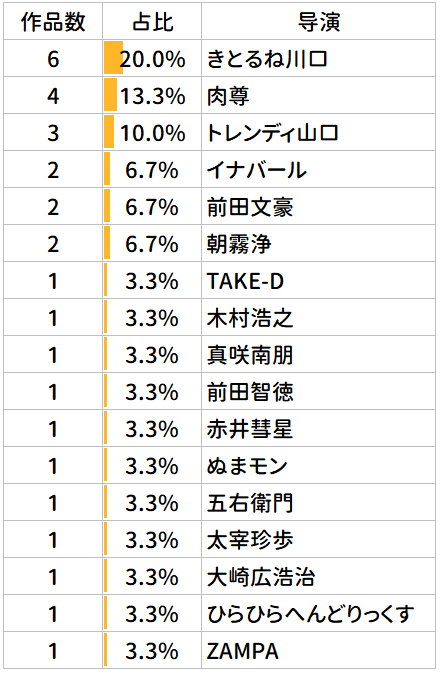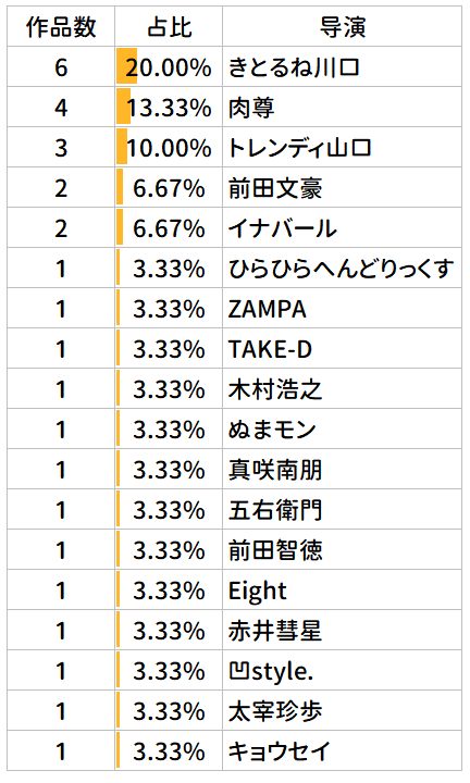 高评分TOP30的作品中,导演占比情况