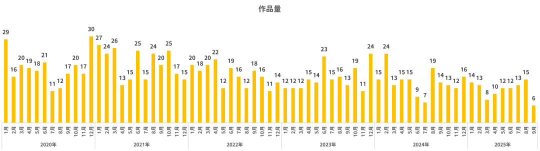 平均每月产出12~20部,大约每2天左右就有1部作品发布。