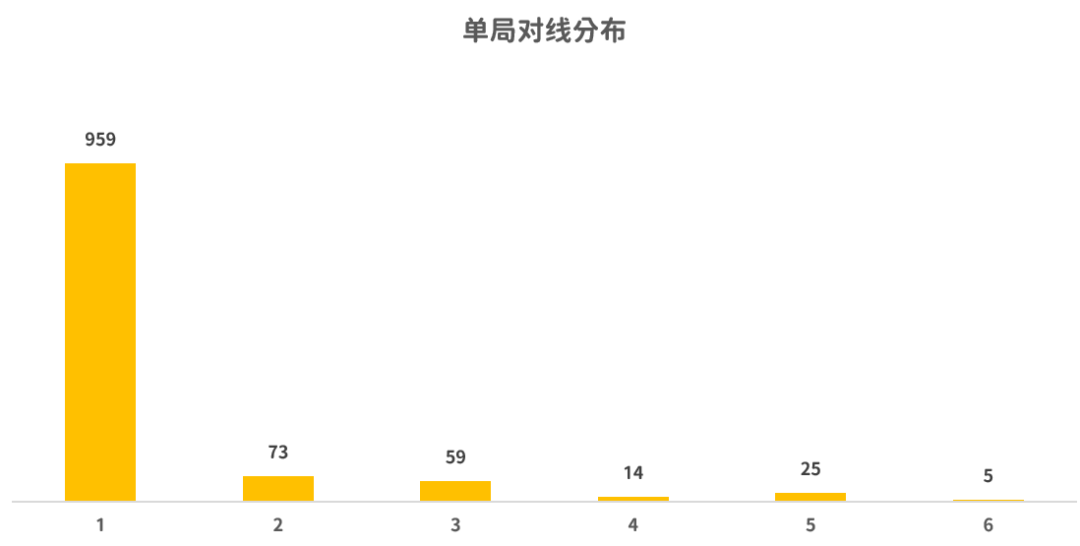 通过对作品基础信息字段进行拆分和统计,我们可以看出单局对线人数的分布情况:其中单人排位赛占比最高,达到84.49%;双人排位赛占6.4%;多人排位赛则占9%。