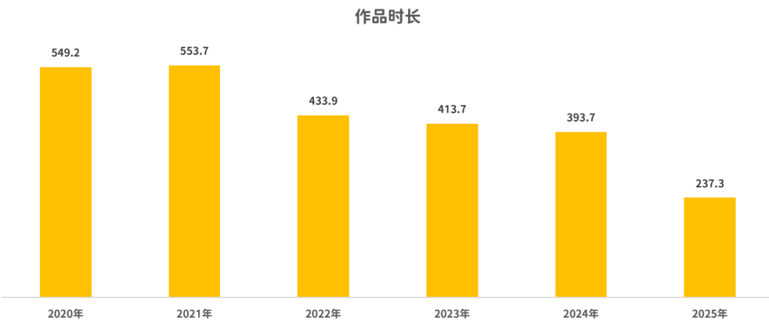 再看看作品的时长分布,计算得出平均每年参演时长468.9小时,
