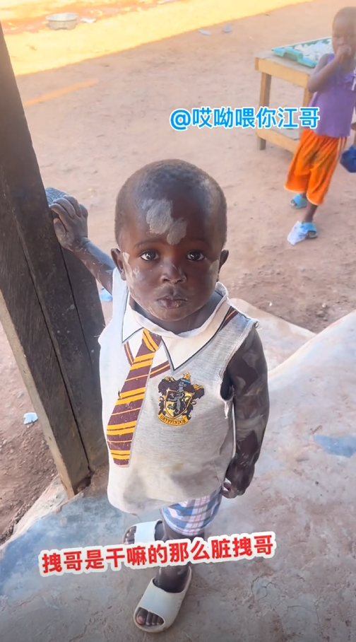 相较于其他当地的同龄小孩,“非洲十二少”没有表现出一丝害怕的神情,反而每次见面还跟哎呦喂你江哥主动打招呼,然后每次脸上都是那种面无表情的样子。