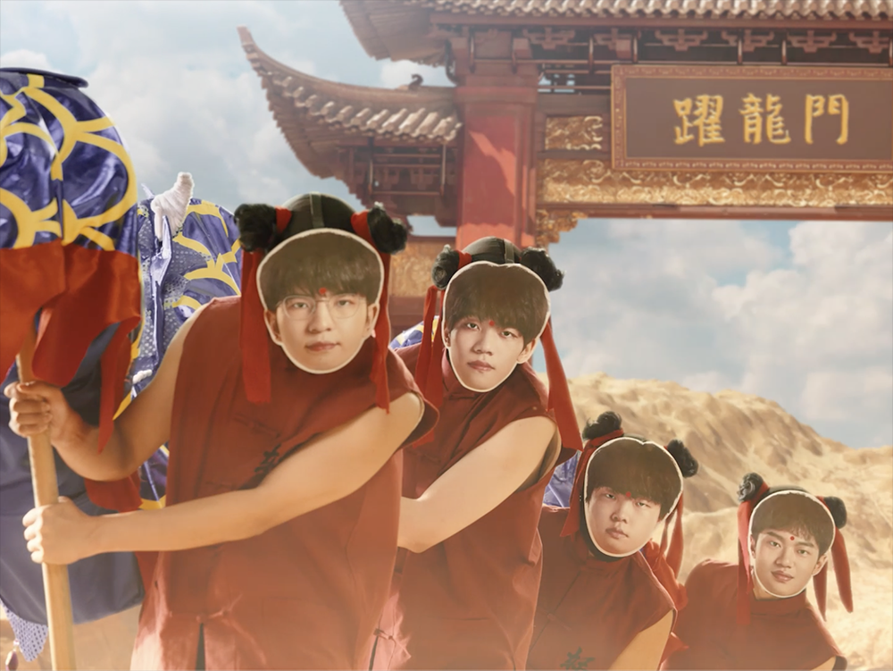 比如去年“阿圈”刚成为BLG赞助商的时候,他们直接找演员贴上战队成员的大头贴,直接搞了一场别开生面的Cosplay表演。