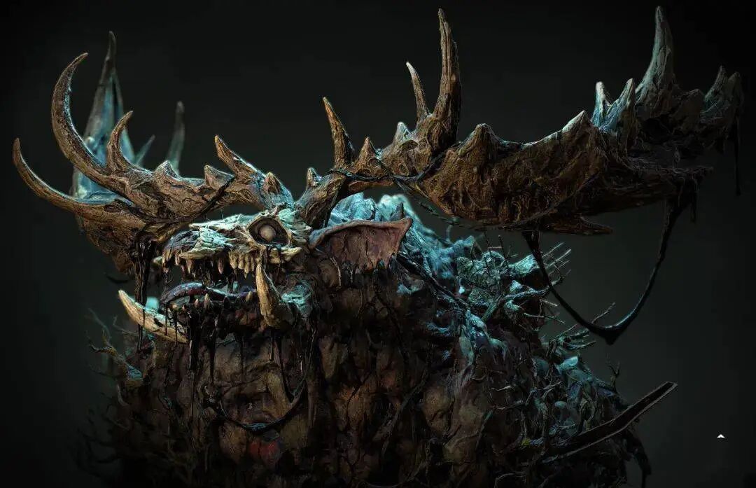 暗月组合了战士和精灵、人马的元素,头部去掉了盔甲,露出了细长的精灵耳和一头黑色长发,相较于1.0柔和的面容,2.0版本的面容更加的冷冽。