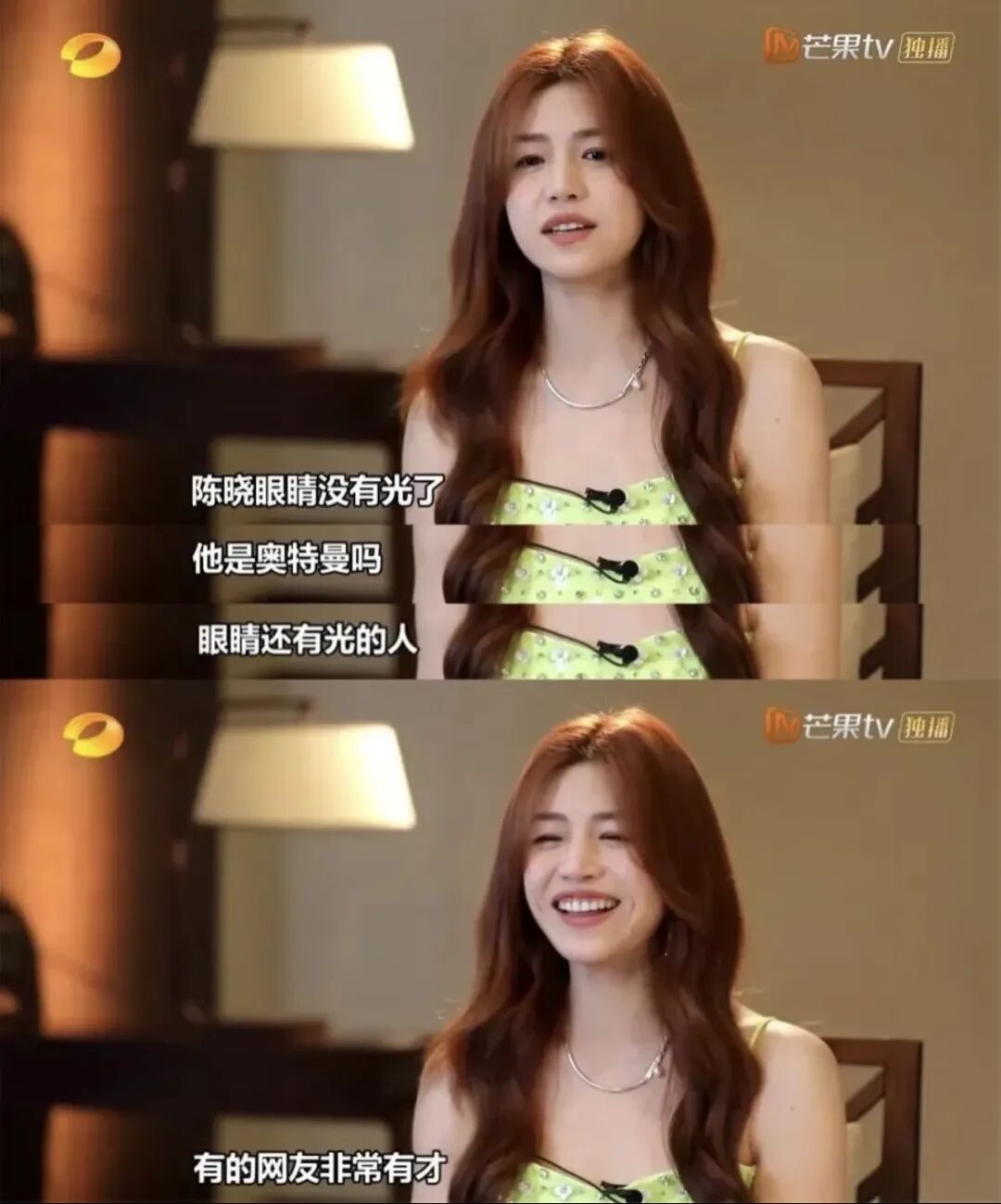 她带着孩子探班陈晓,在面对“陈晓眼里没光”的恶评时,幽默地回应:“他是奥特曼吗?眼睛还会发光。”