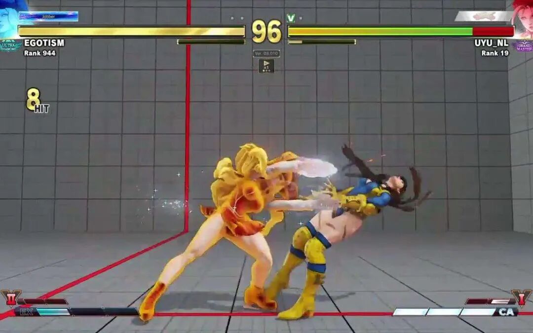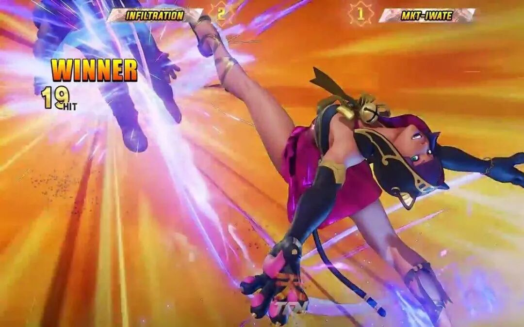 因为身体加强,以及“风水引擎”这个外挂的存在,蛛俐在一挑二(春丽和嘉米联手)的情况下也不落下风,甚至在春丽落单的时候进行重创。