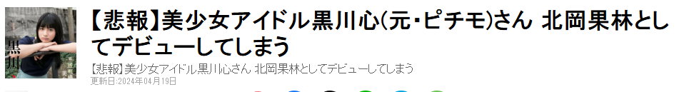 假期即将结束,久违的来了趟公司,结果就刷到了今天最新的资讯:【北冈果林】是前童星【黑川心】的消息被人锤了