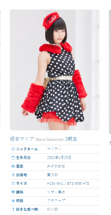 虽然没说这个朋友的名字,但跟她同为三期生入选的也只有一个,可惜她朋友活跃了3年就坚持不下去选择了退团,而【坂本玛利亚】也一直是该团体中最年轻的成员,包括后来的四期生【齋藤雛乃】都比她大一岁。