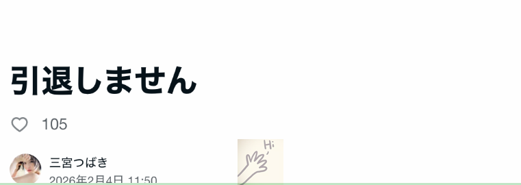 可能自己也收到很多私讯吧?所以三宫つばき(三宫椿)是发了篇长文解释目前的状况,标题就直接给了答案ー