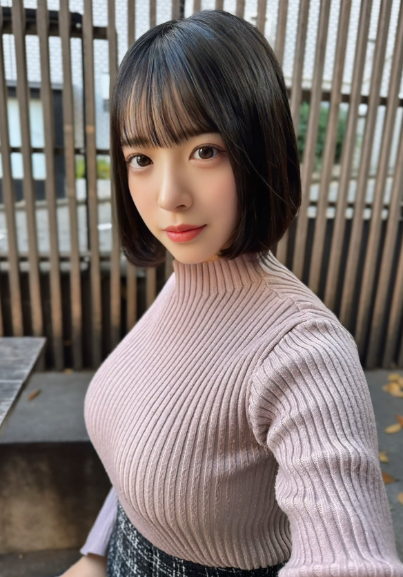 这段15秒的短片,没有多余的镜头堆砌,全程聚焦在一位女生身上:利落俏丽的短发贴服脸颊,勾勒出精致小巧的童颜轮廓,肌肤白皙细腻,五官精致得毫无瑕疵,再搭配上丰满匀称的身形,整体气质干净又惊艳,美得仿佛是AI建模出来的完美女神,不似真人。