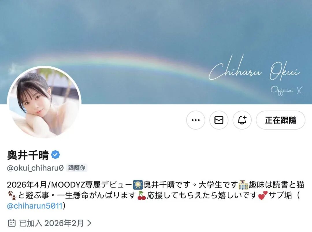 奥井千晴也一样,她在X上的自我介绍是「喜欢读书和撸猫的大学生」,到了片商的文案则是追加了「X经验只有2个人」以及「对杏艾非常好奇」的人设,通常看到这里就知道不是片商太懒,而是要大家把注意力集中在奥井千晴的外型上: